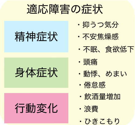 に示したように精神、身体症状および行動変化です。など、ストレス要因の解消または適応