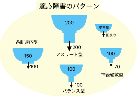 1) 過剰適応型 2) アスリート型 3) 神経過敏型 4) 不安定型 5) 自閉型 6) バランス型